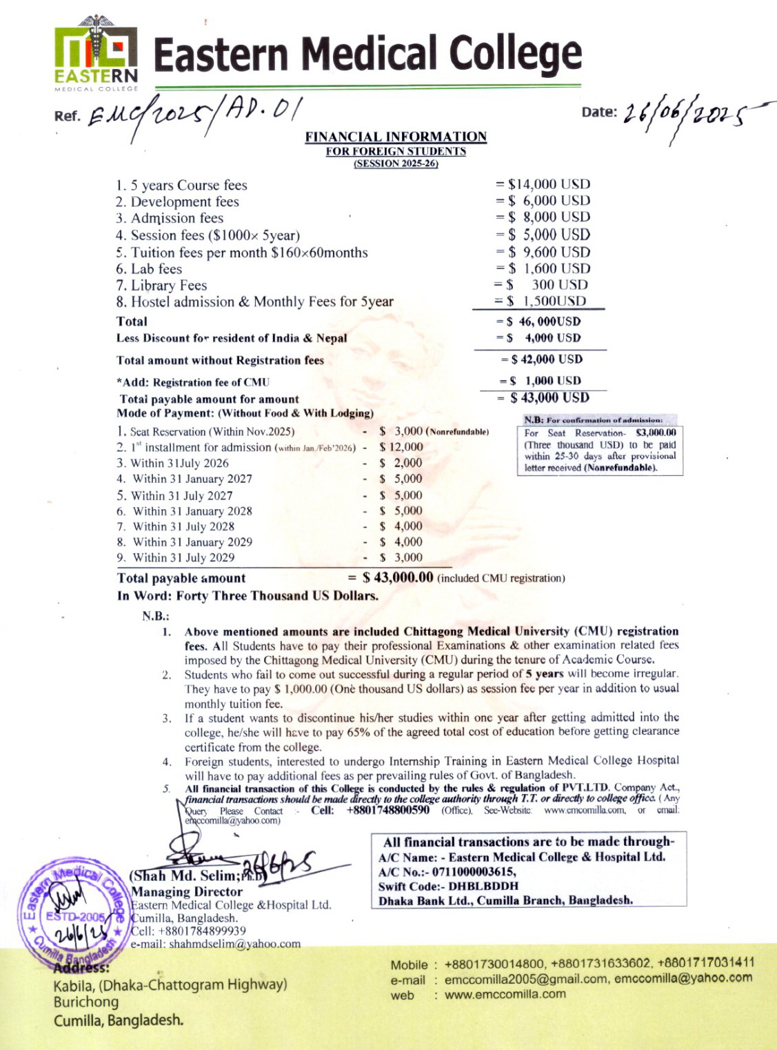 FINANCIAL INFORMATION FOR FOREIGN STUDENTS